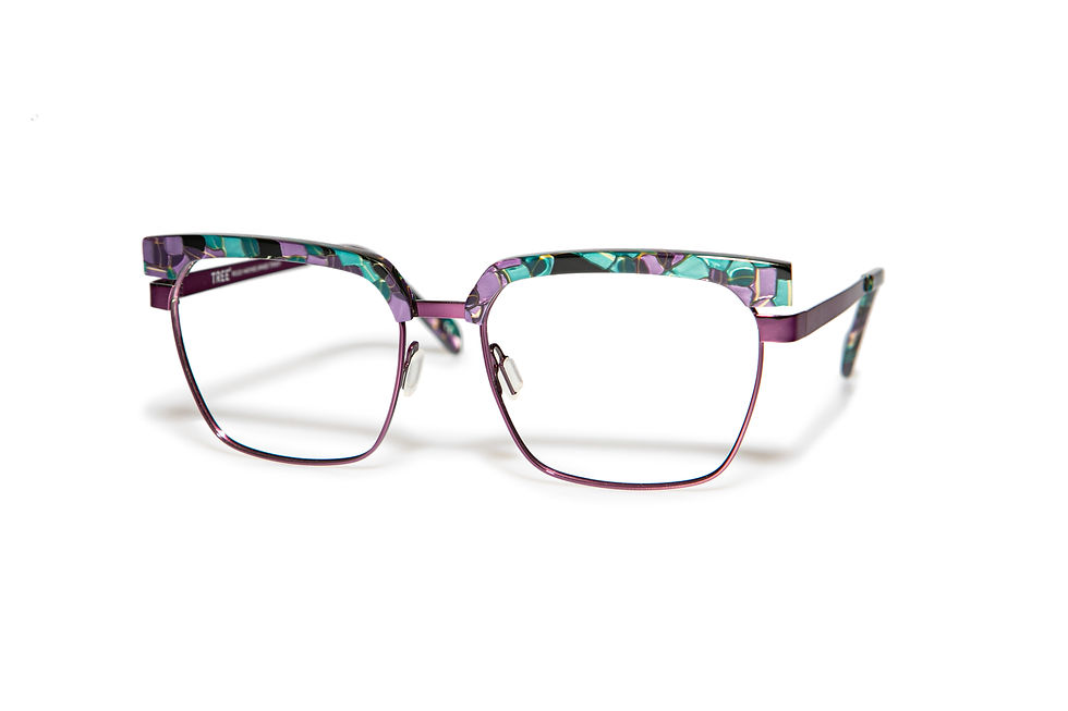 Composed in Titanium with Acetate Decors it is our Minimal and Modern interpretation of the 70s Iconic shapes and styles.